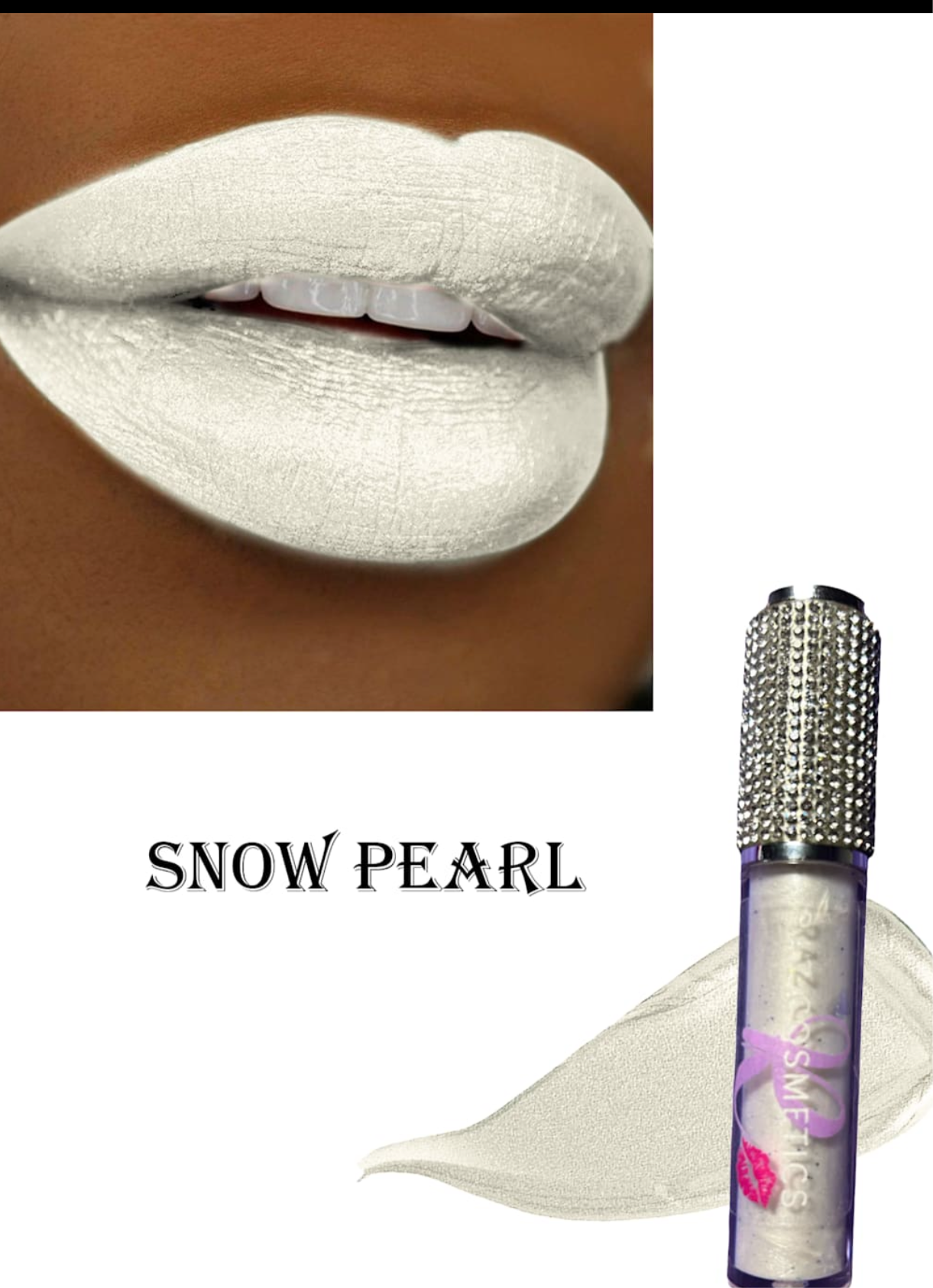 Snow Pearl is a beautiful white with light blue glitter that will have your lips popping all Day.